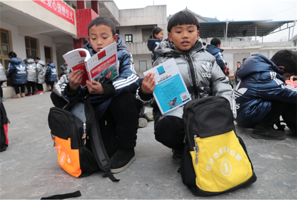 捐贈(zèng)儀式現(xiàn)場,在孩子們殷切的期盼中,長沙市保安服務(wù)行業(yè)愛心團(tuán)隊(duì)將物資有序發(fā)放到學(xué)生手中。孩子們興高采烈的穿上新棉衣、背上新書包,翻開新的課外讀物、打開新的文具盒,臉上露出了開心的笑容。