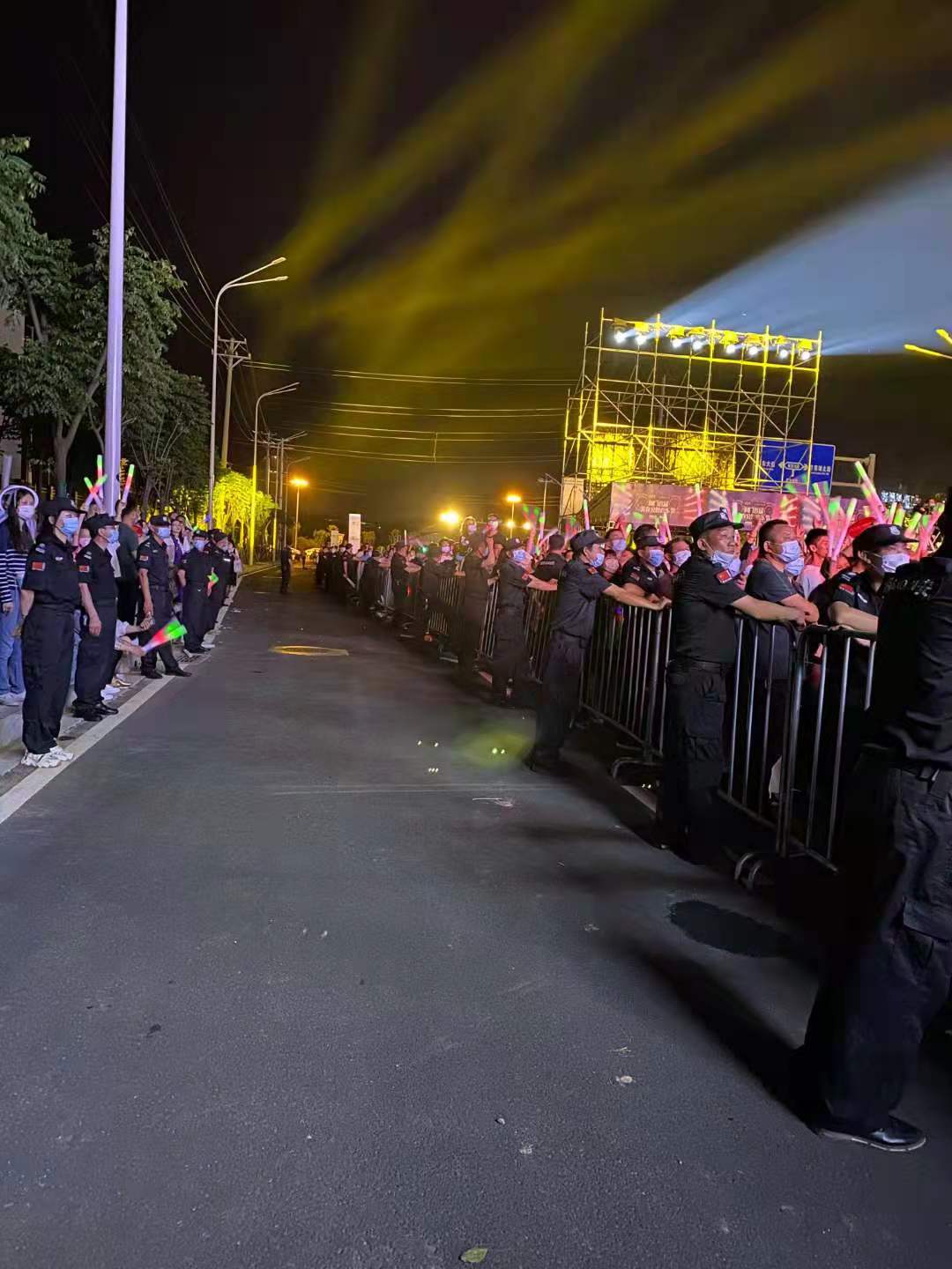 5月29日,泓盈·溪悅灣(荊門首屆美食公路音樂節(jié))在荊門市東寶區(qū)泉水大道隆重舉行,黃齡、武漢光年樂隊、辮子余、跋山巨棒RAP組合等藝人前來演藝。據(jù)統(tǒng)計,當晚有近2萬名觀眾觀看演出。領(lǐng)威保安公司承接了此次活動現(xiàn)場的安全保衛(wèi)任務(wù)。