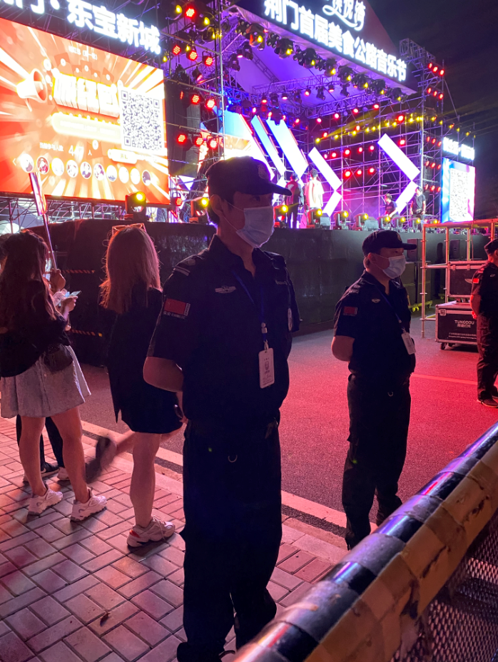 為確保演唱會順利進行,領(lǐng)威保安公司提前謀劃、多次查看場地、制定嚴密的安保應(yīng)急疏散預案和疫情防控方案。根據(jù)活動需求,針對檢票口、舞臺區(qū)域、藝人通道、候場區(qū)、應(yīng)急車道、停車場、美食區(qū)分別部署崗哨,安排專人值守。
