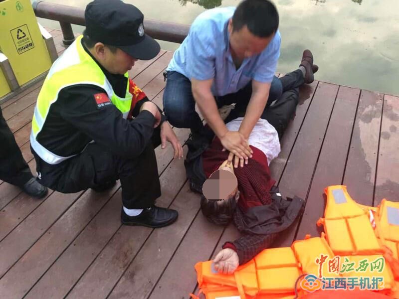 正同家人到此游園的萍礦集團65歲的退休職工許彩發(fā)見狀,來不及多想,把鞋子一脫毫不猶豫縱身躍入湖中。聞訊趕到事發(fā)地的安保隊長向培重也積極參與救援,同時安排組織就近隊員攜帶救生設(shè)施緊急趕到事發(fā)地,并要求安保隊員迅速撥打110、120求助。