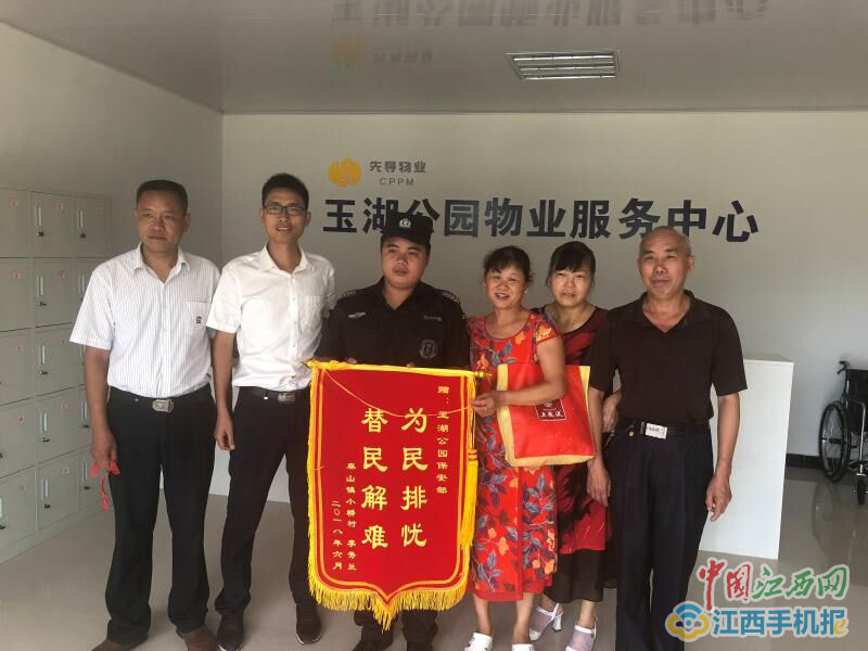 6月8日下午16:00左右,安保隊員方建端在火神廣場男廁所撿到了一個紫紅色的包包。經(jīng)查看,包內(nèi)有2本存折、2張銀行卡、身份證等有效物件,方建端迅速將錢包交至玉湖公園物業(yè)服務(wù)中心。隨后不久,失主在火神廣場焦急地尋找丟失的錢包。經(jīng)和失主核實信息之后,服務(wù)中心將物品完好歸還。失主十分感激,贊揚玉湖公園保安認真負責(zé)、盡職盡責(zé),送來一面錦旗以示感謝。
